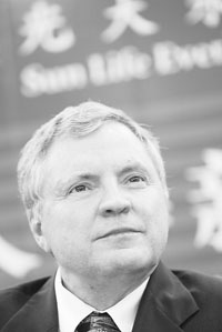 日前,合资寿险商光大永明人寿引进的第二员“海外大将”——首席精算师彭德,首次在中国媒体面前亮相。和他同台亮相的还有该公司新推出的2.5%年保底收益的万能险。效力于加拿大永明金融29年、有着27年北美精算师资格的彭德与中国结缘已有9年,正是他从1996开始一手缔造了合资寿险商光大永明人寿。