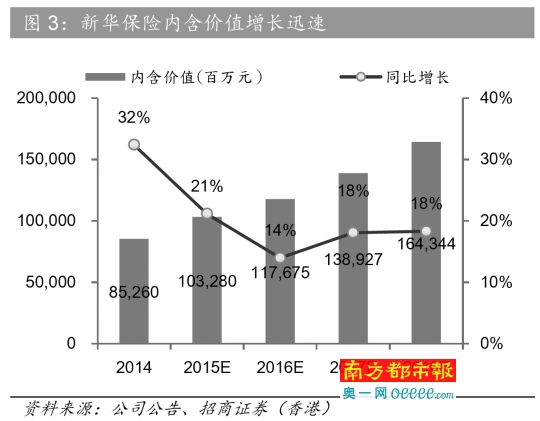 新华保险内含价值增长 资料来源:招商证券