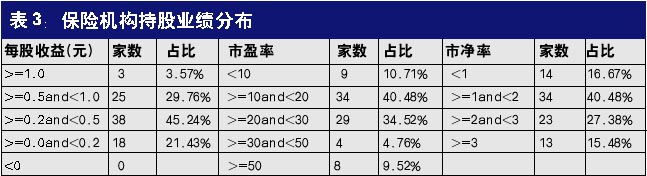据统计,保险机构一季度末持有的股票平均流通市值为30亿元,2005年年报加权平均每股收益0.44元,加权平均每股净资产3.29元。其中,G云天化 、G 中 兴 、航天电器3只个股每股收益超过了1元,业绩在0.5元至1元之间的股票有25只;G韶钢 、G邯钢 、G南山 等14只股票市净率低于1倍,50%以上的股票市净率低于2倍。由此可见,保险资金的投资风格是属于“稳健型”的。