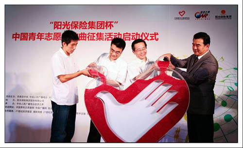8月8日,由共青团中央、中央人民广播电台、中国青年志愿者协会共同主办、阳光保险集团协办的“阳光保险集团杯”中国青年志愿者歌曲征集活动在京正式启动。团中央书记处书记、中国青年志愿者协会理事长卢雍政、中央人民广播电台台长王求和阳光保险集团董事长兼总裁张维功出席启动仪式并讲话。