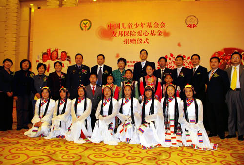 (北京,2008年11月18日)中国儿童少年基金会与友邦保险共同成立的“友邦保险爱心基金”捐赠仪式在人民大会堂隆重举行。中国儿童少年基金副理事长程淑琴,友邦保险中国区总裁陈荣声等各界人士共同出席了本次启动仪式。