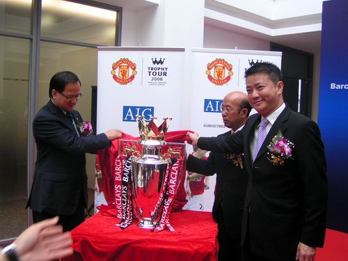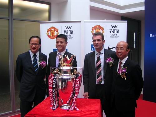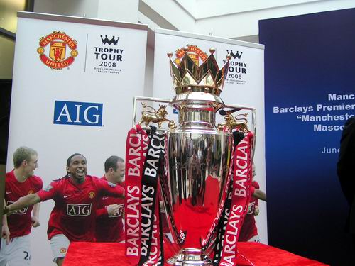 上海热线讯 6月16日,英超冠军杯在上海首次揭开荣耀面纱!英超和欧冠得主 — 英国曼彻斯特联队(以下简称曼联)携英超圣杯以飨申城球迷!曼联自英超联赛夺冠后,再次折桂08欧洲冠军杯!这是他们自1993 年开始第10次获得英超联赛冠军,“红魔”浪潮再次席卷欧洲足坛! 为与亚洲曼联球迷共同分享这一胜利成果,曼联特安排英超冠军杯进行亚洲巡展,目前已在马来西亚、印度尼西亚、新加坡、中国香港和澳门进行了展示,上海站后,圣杯将在最后一站 — 韩国进行展示。
