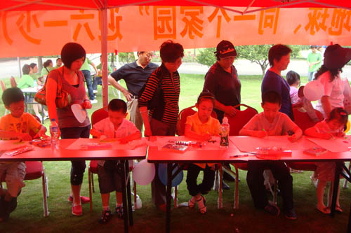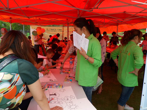 六一活动进行绘画比赛的同时,还对公司的“路走俱乐部”进行了大力宣传, “光大永明路走公益计划”、“爱走,爱生活—低碳我爱嬴”等横幅飘扬在活动现场,家长们报名踊跃,现场招募会员100余人,并对路走俱乐部的活动充满期待。