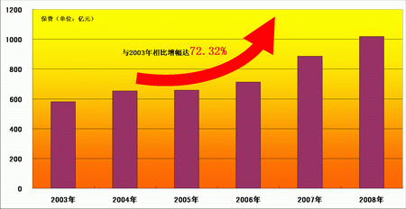 2008年,公截至2008年12月27日,公司保费突破1000亿元,与2003年相比增幅达72.19%