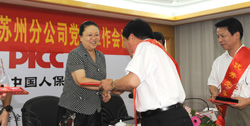 中国人保财险苏州市分公司党委书记、总经理沈丽敏女士要求全市系统的各级党组织、广大党员及全体员工能以先进为榜样,继续积极投入到“创先争优”活动中去,为实现“建设高品质公司”的愿景目标作出更大贡献。