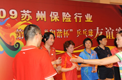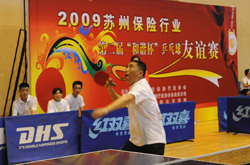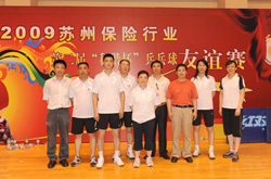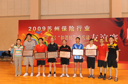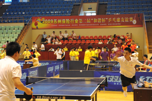 7月11日至12日,苏州市保险行业23家会员单位乒乓球代表队齐聚苏州大学体育馆,参加了第二届“和谐杯”乒乓球比赛。苏州市分公司代表队在蒋浩宇副总经理的带领下,经过积极备战训练,打出了水平,争得了荣誉,获得团体比赛第四名。在女子单打比赛中,昆山支公司的周志琴获得了第六名。