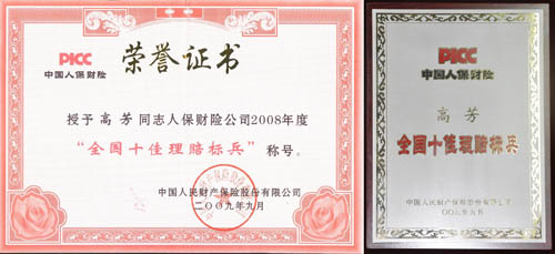 中国人保财险昆山支公司定损员高芳喜获“全国十佳理赔标兵”