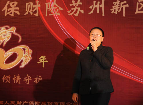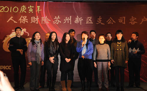 2009年新区支公司实现保费收入5880.89万元,同比增长 17.37 %。为回报客户的支持与厚爱,1月30日,新区支公司举办了一场别开生面的2010年客户答谢会,来自各客户单位的150多位嘉宾出席盛宴。席间,苏州市分公司总经理沈丽敏、副总经理陈嘉相继致辞,对嘉宾的到来表示感谢,新区支公司团队整体亮相向客户拜年,客户代表李先生向新区支公司赠送了礼物。