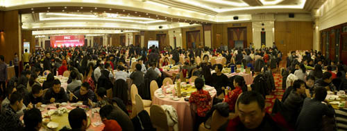 2月9日傍晚,苏州市会议中心丰乐宫大厅内春意融融、喜气洋洋,来自中国人保财险苏州市分公司市区各家经营单位和市分公司本部、中心的600名员工欢聚一堂,共同参加了苏州人保迎新春团拜会。市分公司领导班子为2010年的奋斗目标揭牌。沈丽敏总经理发表了热情洋溢的讲话,她代表总经理室向奋战在苏州人保各条战线的广大员工表示了崇高的敬意和新年的祝福。总经理室成员向每一位员工派发了新年红包。
