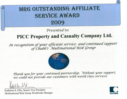 近日,中国人保财险苏州市分公司获丘博保险集团颁发的“2009年全球业务最佳合作伙伴”奖,这是该奖项在中国的唯一授予。