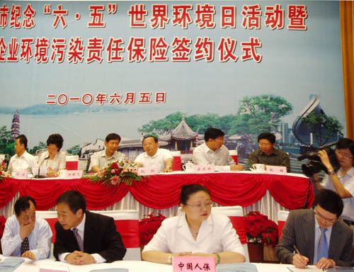 6月5日世界环境保护日,苏州市举行纪念“6•5”世界环境日活动暨企业环境污染责任保险签约仪式,中国人保财险苏州市分公司作为主要承保公司之一,与苏州首批66家重点风险源企业签约,今后,参保企业发生责任内的环境风险事故,受害人将得到保险公司在责任限额内的赔偿。