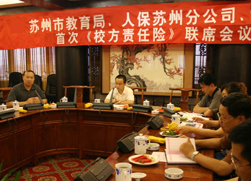 2005年苏州市第十三届人大常委会第十一次会议制定颁布、江苏省第十届人大常委会第十一次会议批准的《苏州市中小学生人身伤害事故预防与处理条例》,将设立学生伤害事故责任保险和学生伤害事故处理专项资金的规定列为当年苏州市委、市政府的为民实事工程。在苏州首次《校方责任险》联席会议上,作为首席承保方及建设“平安校园”领导小组成员之一的苏州人保财险向各教育区局及学校老师介绍了该险种相关承保、理赔及服务落实情况,并向全市中小学发放了《安全教育手册》,宣传安全意识,为平安苏州的建设做出了积极的贡献。