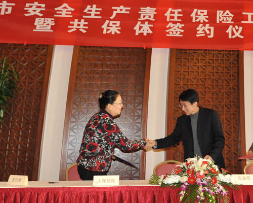 2010年3月苏州人保财险总经理沈丽敏女士与市安监局领导签约
