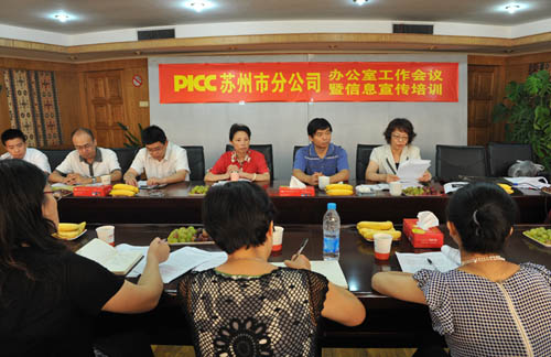 日前,中国人保财险苏州市分公司在太仓召开全市系统办公室工作会议,来自全辖各个支公司和市分公司本部中心、职能部门的30多名从事信息宣传工作的同志第一次齐聚一堂,自始至终参加了会议。一批2009年度信息宣传工作先进单位和个人受到了表彰和奖励。