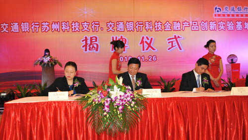 11月26日,在交通银行苏州科技支行暨交通银行科技金融产品创新实验基地的揭牌仪式上,中国人保财险苏州市分公司与苏州交通银行签订了战略合作协议。