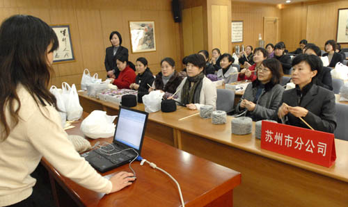 今年2月11日,苏州人保财险编织兴趣班开班了,在中午休息时间,近50位女职工聊天、谈编织又有了新去处。在苏州人保财险,如果你想学唱歌,可以加入女子合唱团,专业声乐老师为您作辅导;如果你想学烹饪,加入烹饪兴趣爱好班,公司的国家二级大厨为你掌勺,可以顺便尝尝鲜;如果你想锻炼身体,加入瑜伽兴趣班,有专业教练来指导;如果你想学摄影,可以在公司的摄影沙龙里与摄影家、发烧友交流心得。。。在苏州人保财险,员工只要有爱好、有特长,都可以找到一群和你一起玩的人。