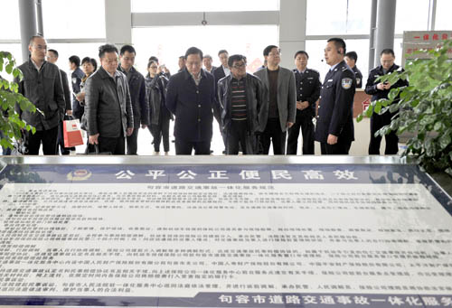 3月24日,苏州市人大组织苏州市政府办公室、公安局、中级人民法院、司法局、保监分局、人保财险苏州市分公司等部门及单位的有关领导和人大代表,到句容市专题考察调研道路交通事故处理一体化做法和经验。