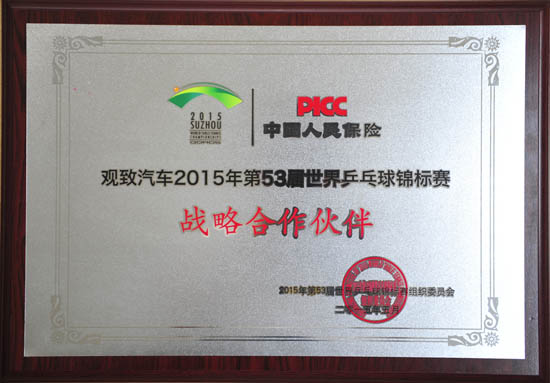 6月26日,第53届世乒赛赞助商授牌仪式在苏州举办,感谢并表彰长期支持苏州世乒赛的广大赞助商。苏州人保财险沈丽敏总经理代表中国人民保险集团,从世乒赛组委会领导手中接过“战略合作伙伴”和“保险类独家合作伙伴”两项荣誉,并作为赞助商代表现场致辞。