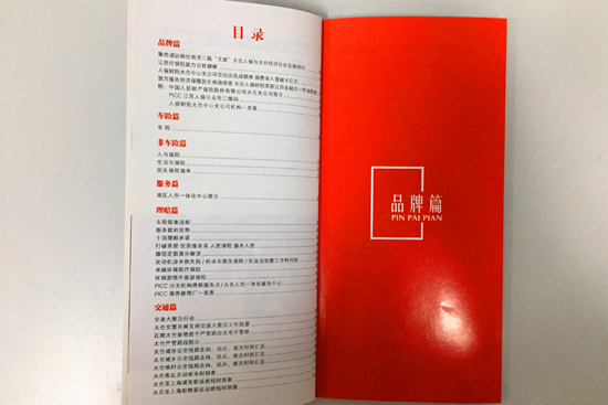 据介绍,该手册由公司品牌、新推险种、门店指南、承诺服务、理赔流程等涉保内容组成,将保险的投保、出单、理赔、服务等环节作了详实介绍,还附有交通整治、违章抓拍、严管路段、公交班次等便民资讯,是一本集民生保险服务之大成的“宝典”,内容丰富,形式多样,图文并茂,成为保险的伴侣、生活的向导。