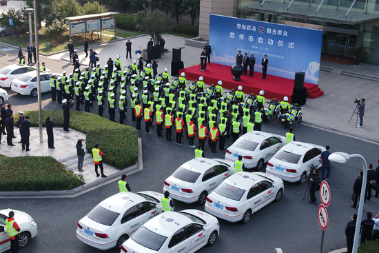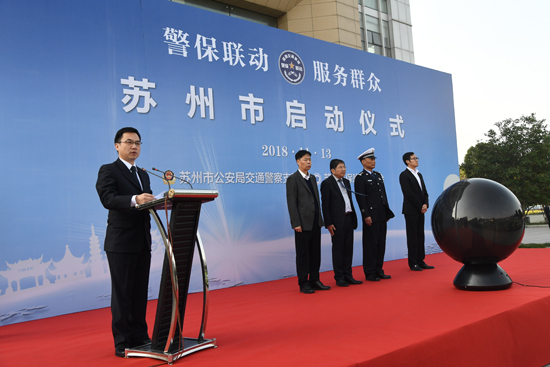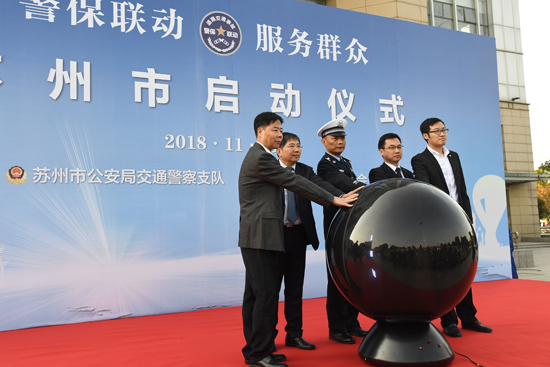 11月13日,苏州市“警保联动”启动仪式在苏州交警支队广场举行,苏州市交警支队支队长高昶、副政委唐国伟,苏州市保险行业协会秘书长蒋雷,人保财险苏州市分公司副总经理吴青等领导及相关交警、查勘员代表出席启动仪式。人保救援直升机、“警保联动”查勘车、交警巡逻车及查勘员和交警们组成的方阵,在广场上整齐排列、整装待发。