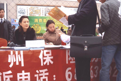 “3•15”日,保险行业协会与苏州保险旺季的工作人员全体同志出动,积极参与消协在观前街举办的维权宣传大型活动,活动整个过程围绕提高诚信,扩大宣传,维护客户,接待咨询为中心,为提升保险品牌奠定了基础。 活动期间,我们作了大量准备工作,聚集了苏州21家会员公司约2万多份的各类产品宣传资料,以及协会印发了一些服务流程,服务承诺等宣传资料,吸引了大批客户前来观摩咨询,现场我们共接待了百人以上的咨询,同时,接受了二位客户的现场投诉,并作了详细了解和解答。 活动现场上一下掀起了保险热,引起了很多人的关注。苏州各大媒体新闻记者份份来到咨询台前进行拍摄采访。通过“3•15”活动的现场宣传,有力的推动了保险品牌的提升,提高了百姓对保险的认知度。使保险诚信、健康发展。