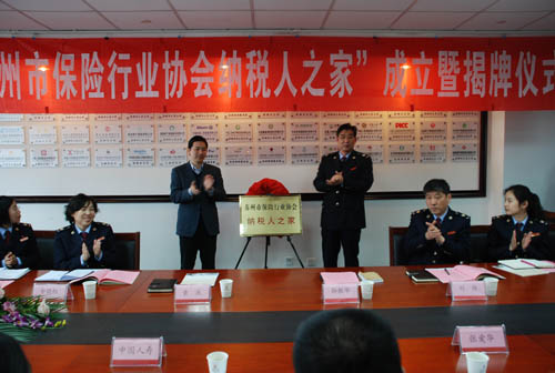 苏州地税局孙振华副局长和苏州保监分局黄庆副局长共同为“苏州市保险行业协会纳税人之家”揭牌。